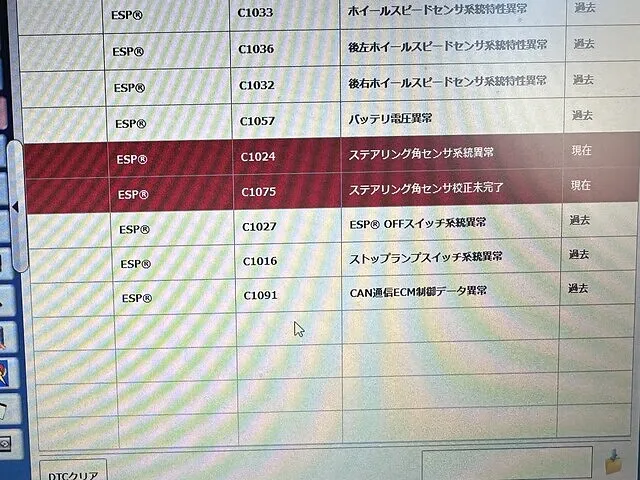 ステアリング角センサー異常の様です